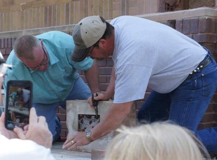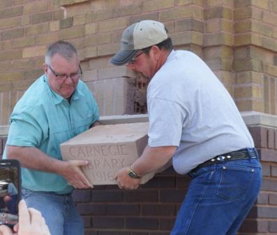 Library staff and members of the Plattsmouth Conservancy were dressed in period attire. Attendees enjoyed buttermilk pie and pumpkin pie while the Plattsmouth Community Band played. What Should Go in the Cornerstone Now?Thank you to the approximately 300 people who attended the opening of the cornerstone at the library on April 23. The library has received several questions about the next stage, so the library would like to provide a few answers. First, the contents of the old cornerstone won’t be included in the new receptacle since they are too fragile. They are currently on display in the library and all efforts will be made to preserve them. The guestbook, donated by Perfect Touch Binding, that was signed on April 23 will also be protected and used for our November event that will celebrate the opening of the library on November 1, 1916. The library is still taking suggestions for what to include in the new receptacle. Several people have suggested gadgets like a smart phone or iPad. These items, along with any other technology, will not be included because of the strong possibility that no one will be able to read the contents in 100, 50, or even 20 years from now. Technology changes too fast, and batteries would corrode any other materials in the receptacle. Library staff is narrowing the list of items that will go into the receptacle as well as trying to find the best kind of receptacle to put them in so they will last over time. If you have any suggestions, call the library at 402-296-4154 x24 or talk to staff when you visit the library. Thanks to Ken “Andy” Anderson who removed the cornerstone and will be sealing the new cornerstone in place later this month. If you’re interested in having a copy of the videorecording that was made during the opening of the cornerstone or a copy of the original 1915 blueprints on CD, please contact Karen Mier at 402-296-4154 x23. Copies will be made available at cost. |